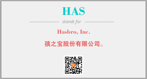 上述内容是“Hasbro, Inc.”作为“HAS”的缩写,解释为“孩之宝股份有限公司。”时的信息,以及英文缩略词HAS所代表的英文单词,其对应的中文拼音、详细解释以及在英文中的流行度和相关分类、应用领域及应用示例等。