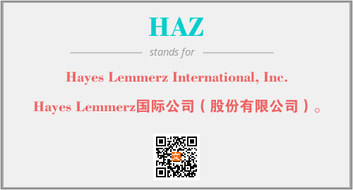 上述内容是“Hayes Lemmerz International, Inc.”作为“HAZ”的缩写,解释为“Hayes Lemmerz国际公司(股份有限公司)。”时的信息,以及英文缩略词HAZ所代表的英文单词,其对应的中文拼音、详细解释以及在英文中的流行度和相关分类、应用领域及应用示例等。