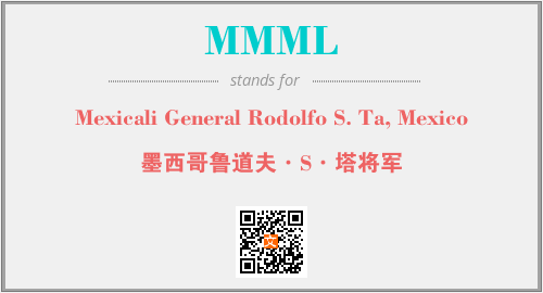 英文缩略词“MMML”经常作为“Mexicali General Rodolfo S. Ta, Mexico”的英文缩写来使用,中文表示:“墨西哥鲁道夫·S·塔将军”。本文将详细介绍英文缩写词MMML所代表英文单词,其对应的中文拼音、详细解释以及在英语中的流行度。此外,还有关于缩略词MMML的分类、应用领域及相关应用示例等。