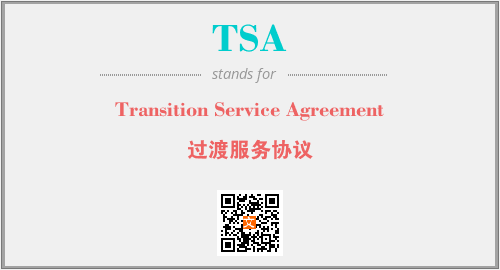 英文缩略词“TSA”经常作为“Transition Service Agreement”的英文缩写来使用,中文表示:“过渡服务协议”。本文将详细介绍英文缩写词TSA所代表英文单词,其对应的中文拼音、详细解释以及在英语中的流行度。此外,还有关于缩略词TSA的分类、应用领域及相关应用示例等。