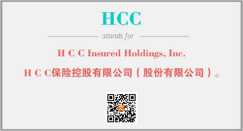 上述内容是“H C C Insured Holdings, Inc.”作为“HCC”的缩写,解释为“H C C保险控股有限公司(股份有限公司)。”时的信息,以及英文缩略词HCC所代表的英文单词,其对应的中文拼音、详细解释以及在英文中的流行度和相关分类、应用领域及应用示例等。