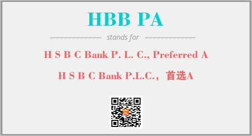 英文缩略词“HBB PA”经常作为“H S B C Bank P. L. C., Preferred A”的英文缩写来使用,中文表示:“H S B C Bank P.L.C.,首选A”。本文将详细介绍英文缩写词HBB PA所代表英文单词,其对应的中文拼音、详细解释以及在英语中的流行度。此外,还有关于缩略词HBB PA的分类、应用领域及相关应用示例等。