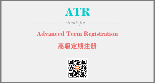 英文缩略词“ATR”经常作为“Advanced Term Registration”的英文缩写来使用,中文表示:“高级定期注册”。本文将详细介绍英文缩写词ATR所代表英文单词,其对应的中文拼音、详细解释以及在英语中的流行度。此外,还有关于缩略词ATR的分类、应用领域及相关应用示例等。