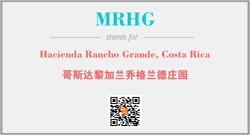 英文缩略词“MRHG”经常作为“Hacienda Rancho Grande, Costa Rica”的英文缩写来使用,中文表示:“哥斯达黎加兰乔格兰德庄园”。本文将详细介绍英文缩写词MRHG所代表英文单词,其对应的中文拼音、详细解释以及在英语中的流行度。此外,还有关于缩略词MRHG的分类、应用领域及相关应用示例等。