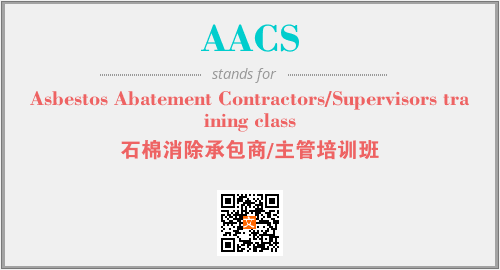 英文缩略词“AACS”经常作为“Asbestos Abatement Contractors/Supervisors training class”的英文缩写来使用,中文表示:“石棉消除承包商/主管培训班”。本文将详细介绍英文缩写词AACS所代表英文单词,其对应的中文拼音、详细解释以及在英语中的流行度。此外,还有关于缩略词AACS的分类、应用领域及相关应用示例等。