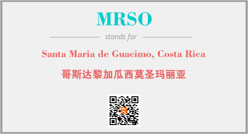 上述内容是“Santa Maria de Guacimo, Costa Rica”作为“MRSO”的缩写,解释为“哥斯达黎加瓜西莫圣玛丽亚”时的信息,以及英文缩略词MRSO所代表的英文单词,其对应的中文拼音、详细解释以及在英文中的流行度和相关分类、应用领域及应用示例等。