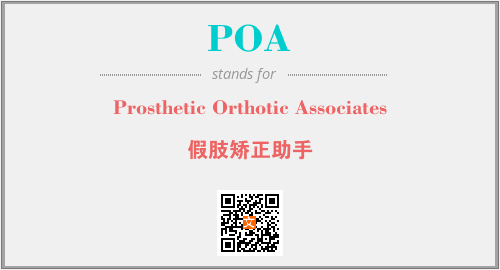 上述内容是“Prosthetic Orthotic Associates”作为“POA”的缩写,解释为“假肢矫正助手”时的信息,以及英文缩略词POA所代表的英文单词,其对应的中文拼音、详细解释以及在英文中的流行度和相关分类、应用领域及应用示例等。