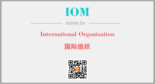英文缩略词“IOM”经常作为“International Organization”的英文缩写来使用,中文表示:“国际组织”。本文将详细介绍英文缩写词IOM所代表英文单词,其对应的中文拼音、详细解释以及在英语中的流行度。此外,还有关于缩略词IOM的分类、应用领域及相关应用示例等。