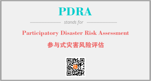 上述内容是“Participatory Disaster Risk Assessment”作为“PDRA”的缩写,解释为“参与式灾害风险评估”时的信息,以及英文缩略词PDRA所代表的英文单词,其对应的中文拼音、详细解释以及在英文中的流行度和相关分类、应用领域及应用示例等。