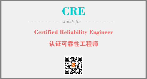 英文缩略词“CRE”经常作为“Certified Reliability Engineer”的英文缩写来使用,中文表示:“认证可靠性工程师”。本文将详细介绍英文缩写词CRE所代表英文单词,其对应的中文拼音、详细解释以及在英语中的流行度。此外,还有关于缩略词CRE的分类、应用领域及相关应用示例等。