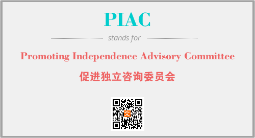 上述内容是“Promoting Independence Advisory Committee”作为“PIAC”的缩写,解释为“促进独立咨询委员会”时的信息,以及英文缩略词PIAC所代表的英文单词,其对应的中文拼音、详细解释以及在英文中的流行度和相关分类、应用领域及应用示例等。