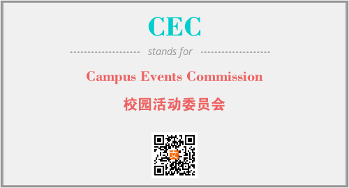英文缩略词“CEC”经常作为“Campus Events Commission”的英文缩写来使用,中文表示:“校园活动委员会”。本文将详细介绍英文缩写词CEC所代表英文单词,其对应的中文拼音、详细解释以及在英语中的流行度。此外,还有关于缩略词CEC的分类、应用领域及相关应用示例等。