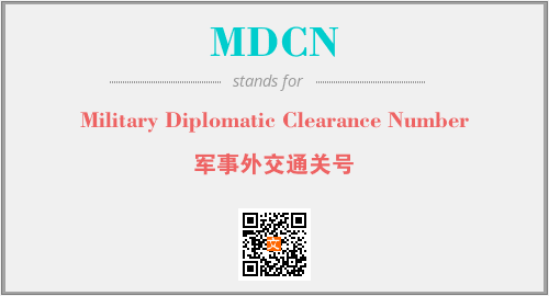 上述内容是“Military Diplomatic Clearance Number”作为“MDCN”的缩写,解释为“军事外交通关号”时的信息,以及英文缩略词MDCN所代表的英文单词,其对应的中文拼音、详细解释以及在英文中的流行度和相关分类、应用领域及应用示例等。