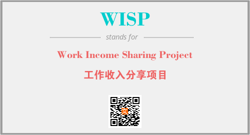 上述内容是“Work Income Sharing Project”作为“WISP”的缩写,解释为“工作收入分享项目”时的信息,以及英文缩略词WISP所代表的英文单词,其对应的中文拼音、详细解释以及在英文中的流行度和相关分类、应用领域及应用示例等。