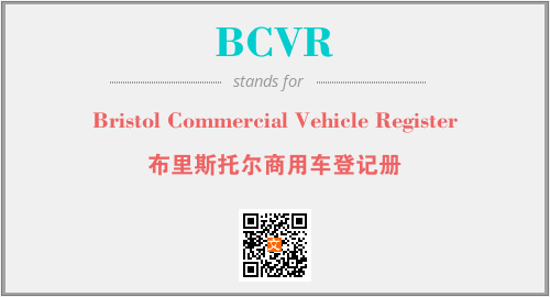 上述内容是“Bristol Commercial Vehicle Register”作为“BCVR”的缩写,解释为“布里斯托尔商用车登记册”时的信息,以及英文缩略词BCVR所代表的英文单词,其对应的中文拼音、详细解释以及在英文中的流行度和相关分类、应用领域及应用示例等。