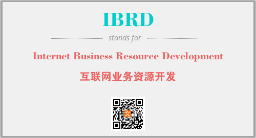 英文缩略词“IBRD”经常作为“Internet Business Resource Development”的英文缩写来使用,中文表示:“互联网业务资源开发”。本文将详细介绍英文缩写词IBRD所代表英文单词,其对应的中文拼音、详细解释以及在英语中的流行度。此外,还有关于缩略词IBRD的分类、应用领域及相关应用示例等。
