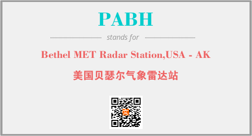 英文缩略词“PABH”经常作为“Bethel MET Radar Station,USA - AK”的英文缩写来使用,中文表示:“美国贝瑟尔气象雷达站”。本文将详细介绍英文缩写词PABH所代表英文单词,其对应的中文拼音、详细解释以及在英语中的流行度。此外,还有关于缩略词PABH的分类、应用领域及相关应用示例等。