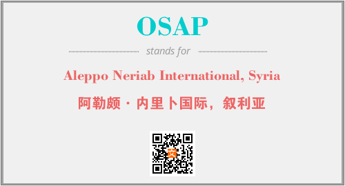 上述内容是“Aleppo Neriab International, Syria”作为“OSAP”的缩写,解释为“阿勒颇·内里卜国际,叙利亚”时的信息,以及英文缩略词OSAP所代表的英文单词,其对应的中文拼音、详细解释以及在英文中的流行度和相关分类、应用领域及应用示例等。