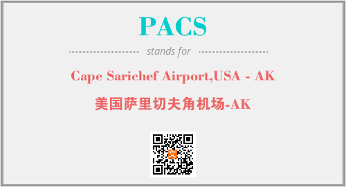 英文缩略词“PACS”经常作为“Cape Sarichef Airport,USA - AK”的英文缩写来使用,中文表示:“美国萨里切夫角机场-AK”。本文将详细介绍英文缩写词PACS所代表英文单词,其对应的中文拼音、详细解释以及在英语中的流行度。此外,还有关于缩略词PACS的分类、应用领域及相关应用示例等。