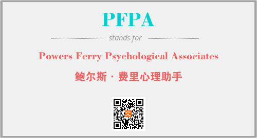 英文缩略词“PFPA”经常作为“Powers Ferry Psychological Associates”的英文缩写来使用,中文表示:“鲍尔斯·费里心理助手”。本文将详细介绍英文缩写词PFPA所代表英文单词,其对应的中文拼音、详细解释以及在英语中的流行度。此外,还有关于缩略词PFPA的分类、应用领域及相关应用示例等。