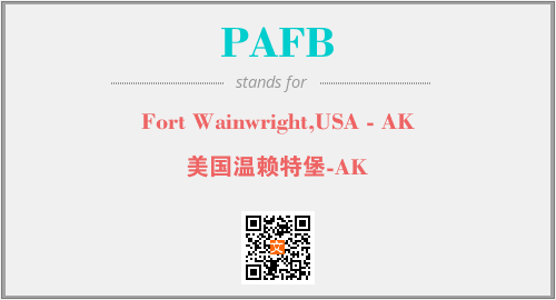 英文缩略词“PAFB”经常作为“Fort Wainwright,USA - AK”的英文缩写来使用,中文表示:“美国温赖特堡-AK”。本文将详细介绍英文缩写词PAFB所代表英文单词,其对应的中文拼音、详细解释以及在英语中的流行度。此外,还有关于缩略词PAFB的分类、应用领域及相关应用示例等。