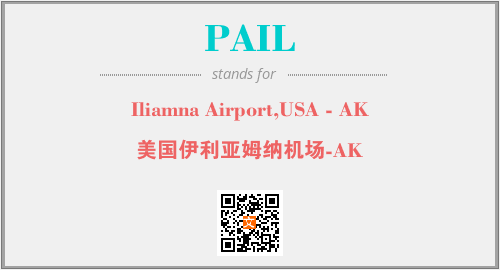 英文缩略词“PAIL”经常作为“Iliamna Airport,USA - AK”的英文缩写来使用,中文表示:“美国伊利亚姆纳机场-AK”。本文将详细介绍英文缩写词PAIL所代表英文单词,其对应的中文拼音、详细解释以及在英语中的流行度。此外,还有关于缩略词PAIL的分类、应用领域及相关应用示例等。