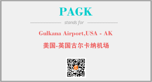 英文缩略词“PAGK”经常作为“Gulkana Airport,USA - AK”的英文缩写来使用,中文表示:“美国-英国古尔卡纳机场”。本文将详细介绍英文缩写词PAGK所代表英文单词,其对应的中文拼音、详细解释以及在英语中的流行度。此外,还有关于缩略词PAGK的分类、应用领域及相关应用示例等。