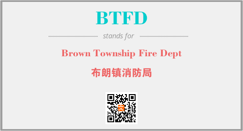 上述内容是“Brown Township Fire Dept”作为“BTFD”的缩写,解释为“布朗镇消防局”时的信息,以及英文缩略词BTFD所代表的英文单词,其对应的中文拼音、详细解释以及在英文中的流行度和相关分类、应用领域及应用示例等。