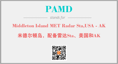 上述内容是“Middleton Island MET Radar Sta,USA - AK”作为“PAMD”的缩写,解释为“米德尔顿岛,配备雷达Sta、美国和AK”时的信息,以及英文缩略词PAMD所代表的英文单词,其对应的中文拼音、详细解释以及在英文中的流行度和相关分类、应用领域及应用示例等。
