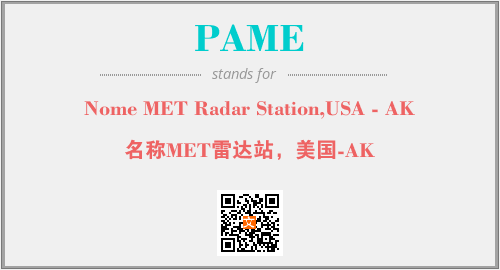 上述内容是“Nome MET Radar Station,USA - AK”作为“PAME”的缩写,解释为“名称MET雷达站,美国-AK”时的信息,以及英文缩略词PAME所代表的英文单词,其对应的中文拼音、详细解释以及在英文中的流行度和相关分类、应用领域及应用示例等。