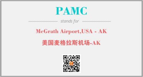上述内容是“McGrath Airport,USA - AK”作为“PAMC”的缩写,解释为“美国麦格拉斯机场-AK”时的信息,以及英文缩略词PAMC所代表的英文单词,其对应的中文拼音、详细解释以及在英文中的流行度和相关分类、应用领域及应用示例等。