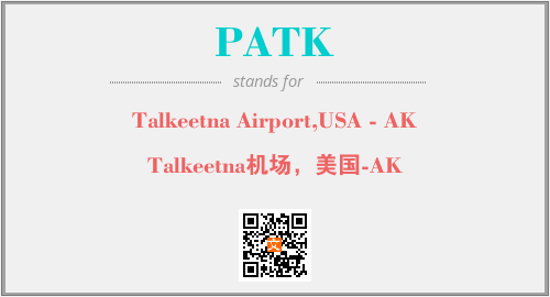 上述内容是“Talkeetna Airport,USA - AK”作为“PATK”的缩写,解释为“Talkeetna机场,美国-AK”时的信息,以及英文缩略词PATK所代表的英文单词,其对应的中文拼音、详细解释以及在英文中的流行度和相关分类、应用领域及应用示例等。