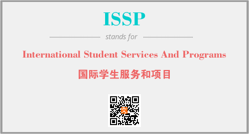 英文缩略词“ISSP”经常作为“International Student Services And Programs”的英文缩写来使用,中文表示:“国际学生服务和项目”。本文将详细介绍英文缩写词ISSP所代表英文单词,其对应的中文拼音、详细解释以及在英语中的流行度。此外,还有关于缩略词ISSP的分类、应用领域及相关应用示例等。