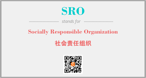 上述内容是“Socially Responsible Organization”作为“SRO”的缩写,解释为“社会责任组织”时的信息,以及英文缩略词SRO所代表的英文单词,其对应的中文拼音、详细解释以及在英文中的流行度和相关分类、应用领域及应用示例等。