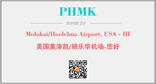 以上为Molokai/Hoolehua Airport, USA - HI英文缩略词PHMK的中文解释,以及该英文缩写在英语的流行度、分类和应用领域方面的信息。