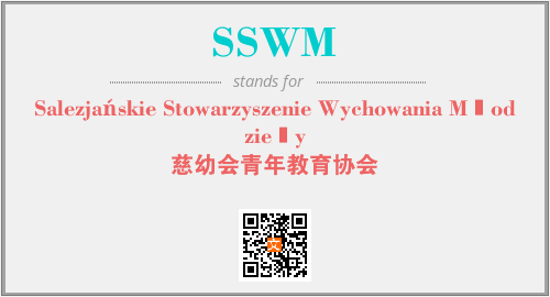 上述内容是“Salezjańskie Stowarzyszenie Wychowania Młodzieży”作为“SSWM”的缩写,解释为“慈幼会青年教育协会”时的信息,以及英文缩略词SSWM所代表的英文单词,其对应的中文拼音、详细解释以及在英文中的流行度和相关分类、应用领域及应用示例等。
