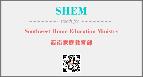 英文缩略词“SHEM”经常作为“Southwest Home Education Ministry”的英文缩写来使用,中文表示:“西南家庭教育部”。本文将详细介绍英文缩写词SHEM所代表英文单词,其对应的中文拼音、详细解释以及在英语中的流行度。此外,还有关于缩略词SHEM的分类、应用领域及相关应用示例等。