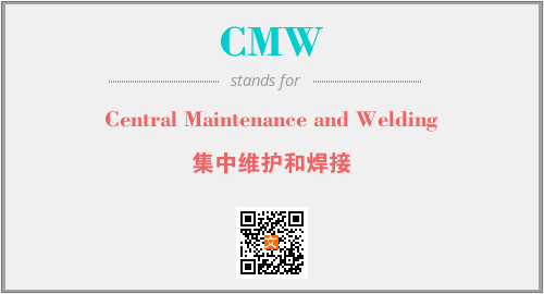 英文缩略词“CMW”经常作为“Central Maintenance and Welding”的英文缩写来使用,中文表示:“集中维护和焊接”。本文将详细介绍英文缩写词CMW所代表英文单词,其对应的中文拼音、详细解释以及在英语中的流行度。此外,还有关于缩略词CMW的分类、应用领域及相关应用示例等。