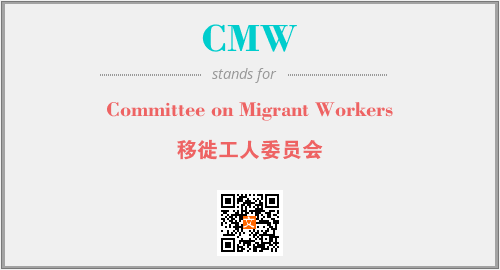 英文缩略词“CMW”经常作为“Committee on Migrant Workers”的英文缩写来使用,中文表示:“移徙工人委员会”。本文将详细介绍英文缩写词CMW所代表英文单词,其对应的中文拼音、详细解释以及在英语中的流行度。此外,还有关于缩略词CMW的分类、应用领域及相关应用示例等。