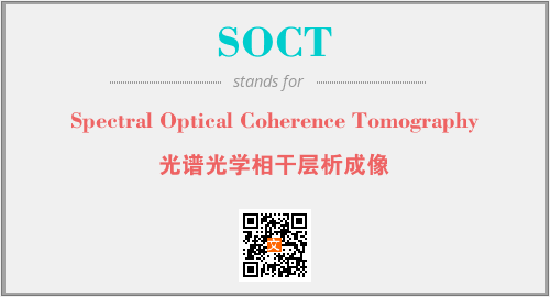 上述内容是“Spectral Optical Coherence Tomography”作为“SOCT”的缩写,解释为“光谱光学相干层析成像”时的信息,以及英文缩略词SOCT所代表的英文单词,其对应的中文拼音、详细解释以及在英文中的流行度和相关分类、应用领域及应用示例等。