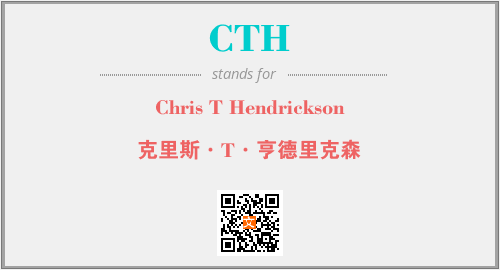 上述内容是“Chris T Hendrickson”作为“CTH”的缩写,解释为“克里斯·T·亨德里克森”时的信息,以及英文缩略词CTH所代表的英文单词,其对应的中文拼音、详细解释以及在英文中的流行度和相关分类、应用领域及应用示例等。