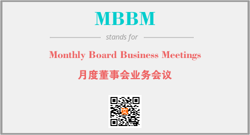 上述内容是“Monthly Board Business Meetings”作为“MBBM”的缩写,解释为“月度董事会业务会议”时的信息,以及英文缩略词MBBM所代表的英文单词,其对应的中文拼音、详细解释以及在英文中的流行度和相关分类、应用领域及应用示例等。
