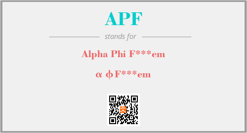 英文缩略词“APF”经常作为“Alpha Phi F***em”的英文缩写来使用,中文表示:“αφF***em”。本文将详细介绍英文缩写词APF所代表英文单词,其对应的中文拼音、详细解释以及在英语中的流行度。此外,还有关于缩略词APF的分类、应用领域及相关应用示例等。