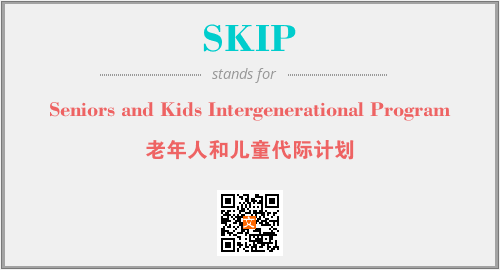 上述内容是“Seniors and Kids Intergenerational Program”作为“SKIP”的缩写,解释为“老年人和儿童代际计划”时的信息,以及英文缩略词SKIP所代表的英文单词,其对应的中文拼音、详细解释以及在英文中的流行度和相关分类、应用领域及应用示例等。