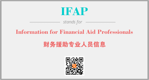 英文缩略词“IFAP”经常作为“Information for Financial Aid Professionals”的英文缩写来使用,中文表示:“财务援助专业人员信息”。本文将详细介绍英文缩写词IFAP所代表英文单词,其对应的中文拼音、详细解释以及在英语中的流行度。此外,还有关于缩略词IFAP的分类、应用领域及相关应用示例等。
