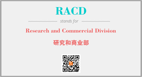 上述内容是“Research and Commercial Division”作为“RACD”的缩写,解释为“研究和商业部”时的信息,以及英文缩略词RACD所代表的英文单词,其对应的中文拼音、详细解释以及在英文中的流行度和相关分类、应用领域及应用示例等。