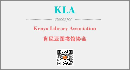 上述内容是“Kenya Library Association”作为“KLA”的缩写,解释为“肯尼亚图书馆协会”时的信息,以及英文缩略词KLA所代表的英文单词,其对应的中文拼音、详细解释以及在英文中的流行度和相关分类、应用领域及应用示例等。