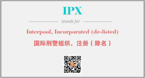上述内容是“Interpool, Incorporated (de-listed)”作为“IPX”的缩写,解释为“国际刑警组织,注册(除名)”时的信息,以及英文缩略词IPX所代表的英文单词,其对应的中文拼音、详细解释以及在英文中的流行度和相关分类、应用领域及应用示例等。