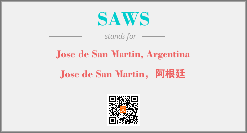 上述内容是“Jose de San Martin, Argentina”作为“SAWS”的缩写,解释为“Jose de San Martin,阿根廷”时的信息,以及英文缩略词SAWS所代表的英文单词,其对应的中文拼音、详细解释以及在英文中的流行度和相关分类、应用领域及应用示例等。