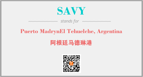 上述内容是“Puerto MadrynEl Tehuelche, Argentina”作为“SAVY”的缩写,解释为“阿根廷马德琳港”时的信息,以及英文缩略词SAVY所代表的英文单词,其对应的中文拼音、详细解释以及在英文中的流行度和相关分类、应用领域及应用示例等。